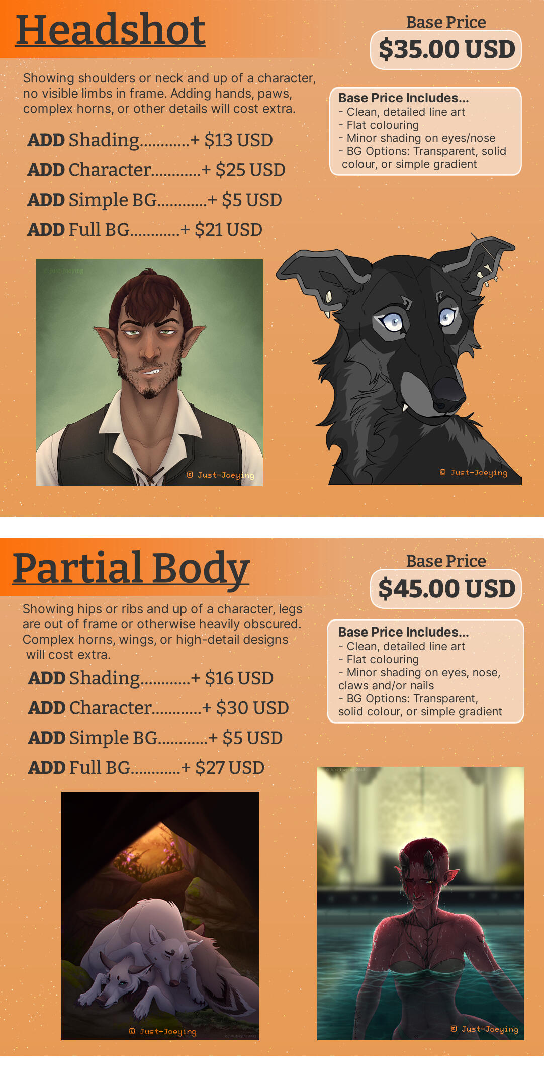 🟠 Once the price has been set and the commission is started, a full refund is not available. Refunds are not a guarantee and will vary depending on the state of completion and the situation.